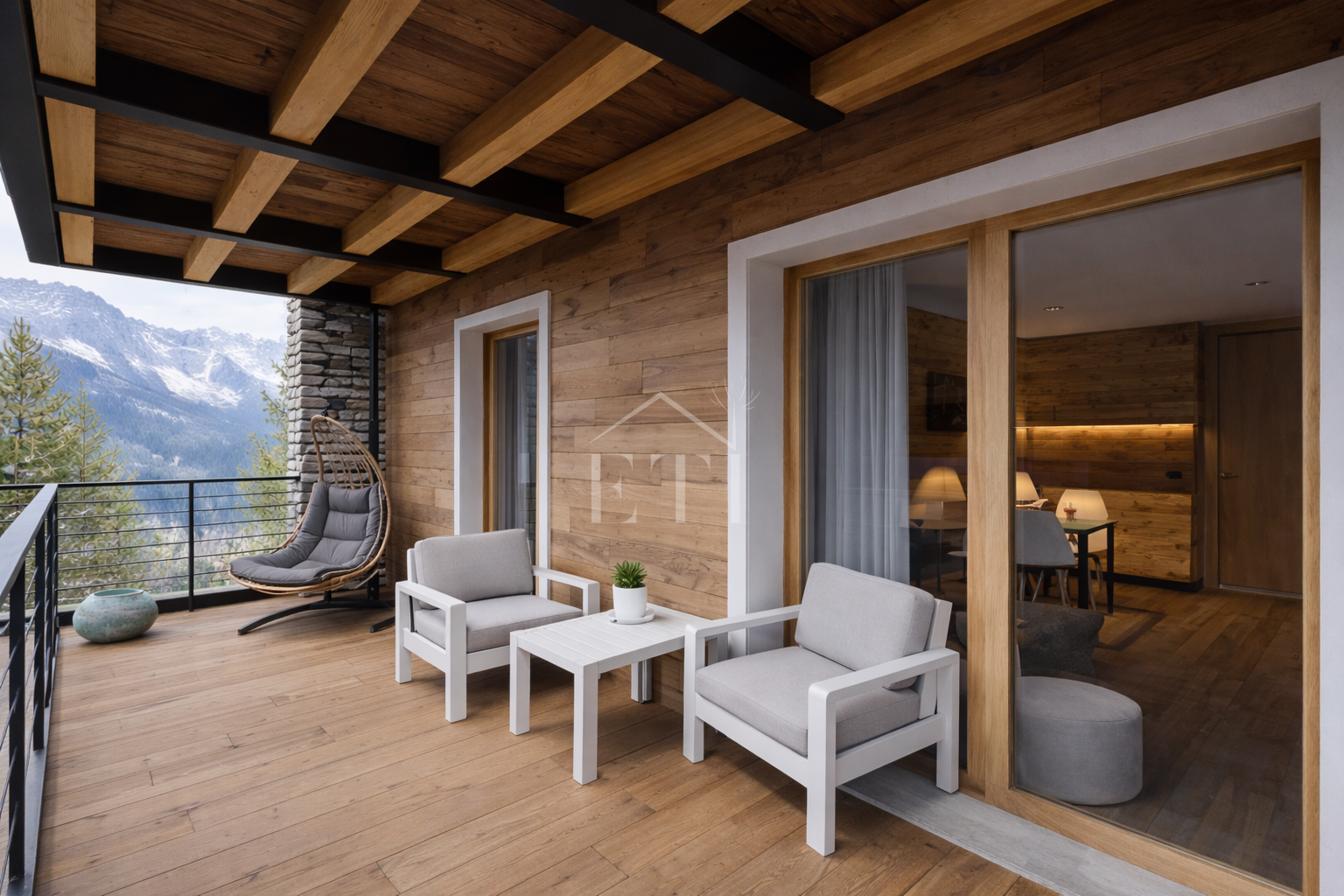 Le ampie vetrate, i balconi e i terrazzi panoramici incorniciano vedute spettacolari sulle montagne valdostane. Gli interni, progettati con gusto e attenzione al dettaglio, uniscono legno, pietra e luce naturale per creare atmosfere calde, accoglienti e al tempo stesso moderne.