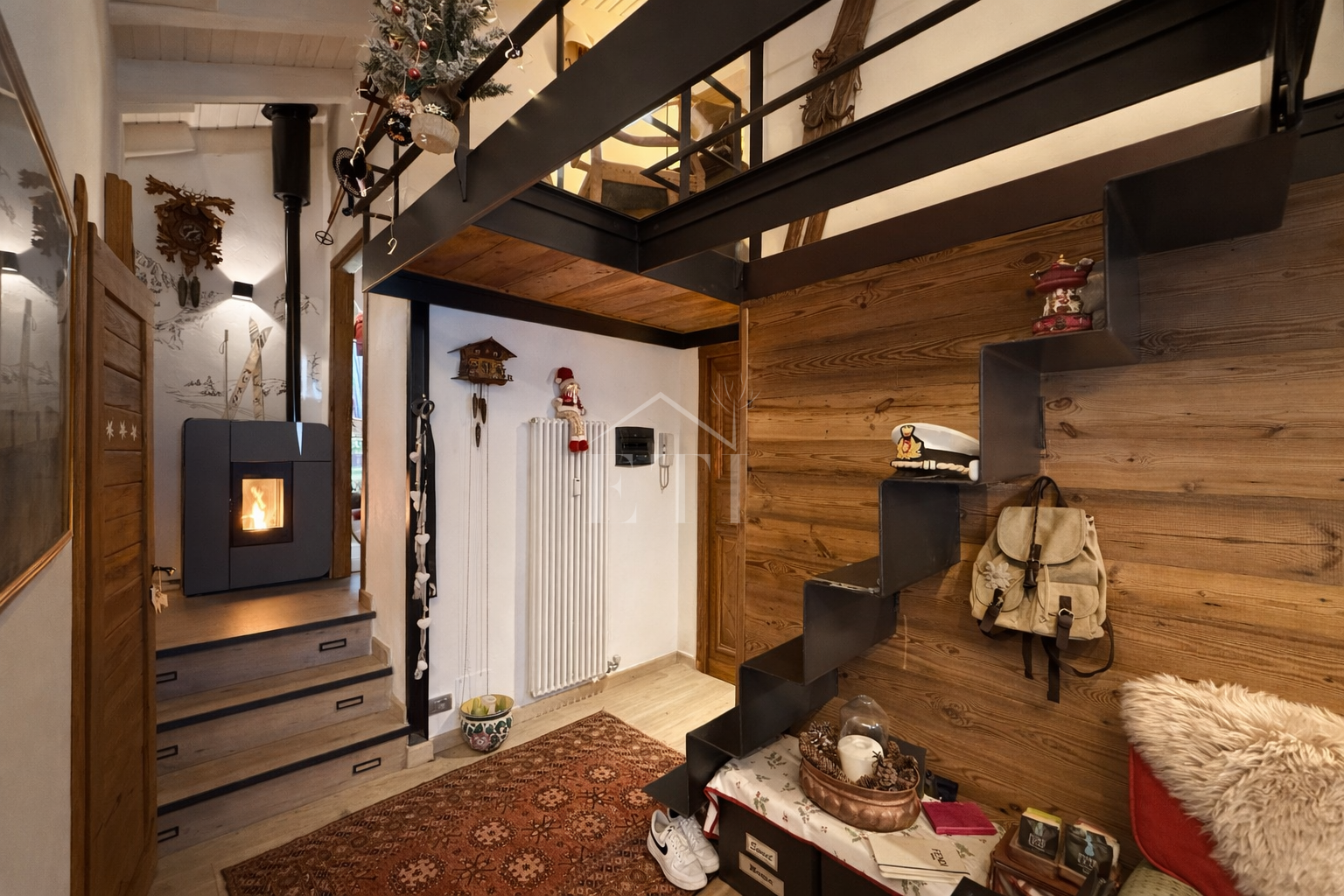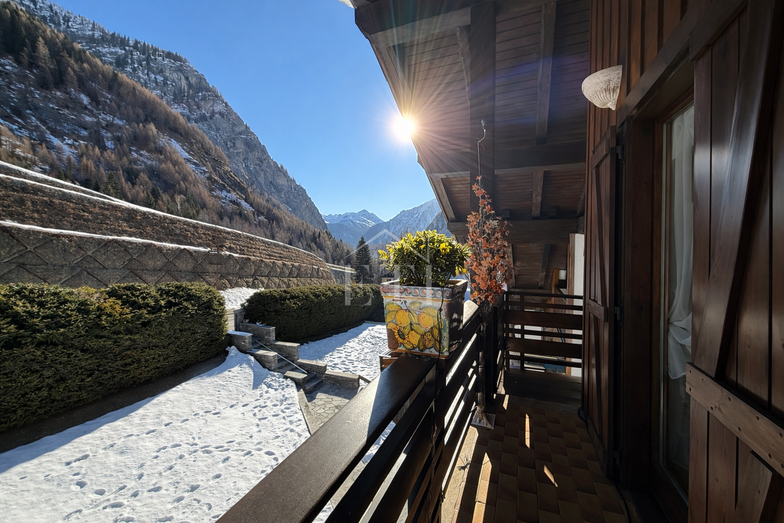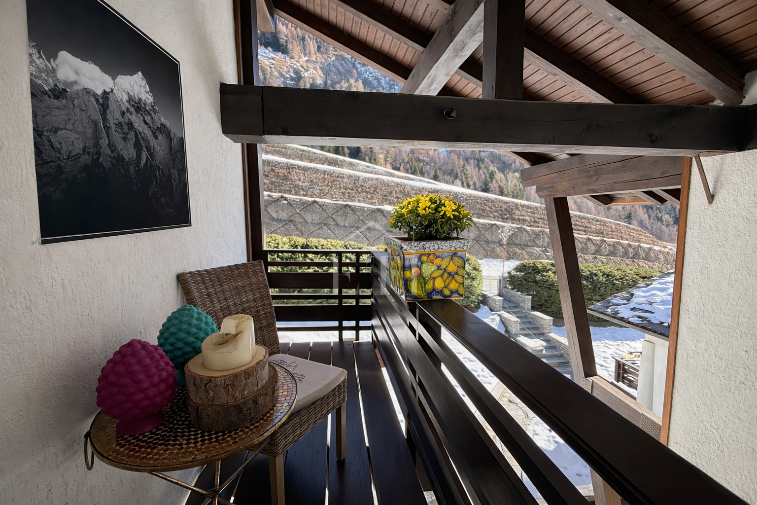 VENDITA: Ai piedi del Monte Bianco vicinissimo al suggestivo e caratteristico borgo storico di Entrèves e agli impianti di risalita della Val Veny proponiamo in vendita una meravigliosa mansarda completamente rinnovata. L’immobile sito al secondo piano si compone di ingresso su soggiorno con camino, zona pranzo, angolo cottura, scenografico soppalco vetrato dove è presente una zona studio, splendido terrazzo con vista sulla catena del Bianco, bagno finestrato con doccia, camera da letto matrimoniale e seconda camera entrambe con uscita sul secondo balcone. Completano la proprietà in garage di ampie dimensioni e una cantina.