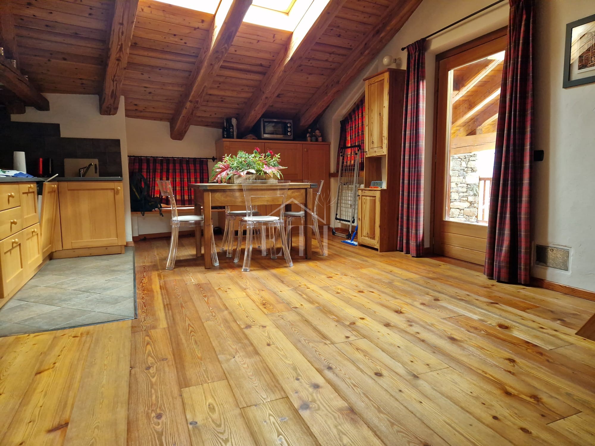 VENDITE: La Salle frazione Remondey, proponiamo in tipica casa montana in pietra e legno all’interno di un piccolo condominio, ampio bilocale disposto su due piani, così composto: piano secondo con ingresso indipendente da terrazzo panoramico, ampio soggiorno con camino, angolo cottura zona pranzo, bagno con doccia finestrato, al piano superiore collegato da scala interna, locale accessorio e camera, completano la proprietà una cantina e un posto auto esterno.