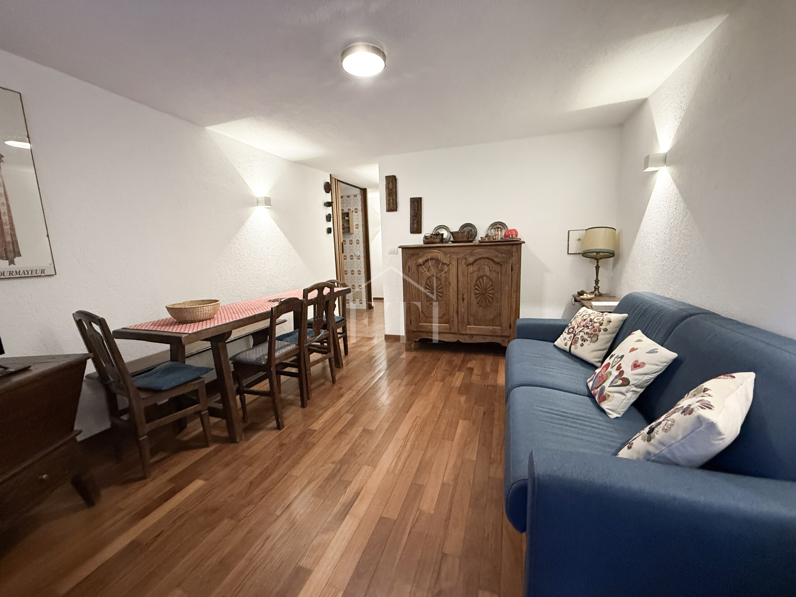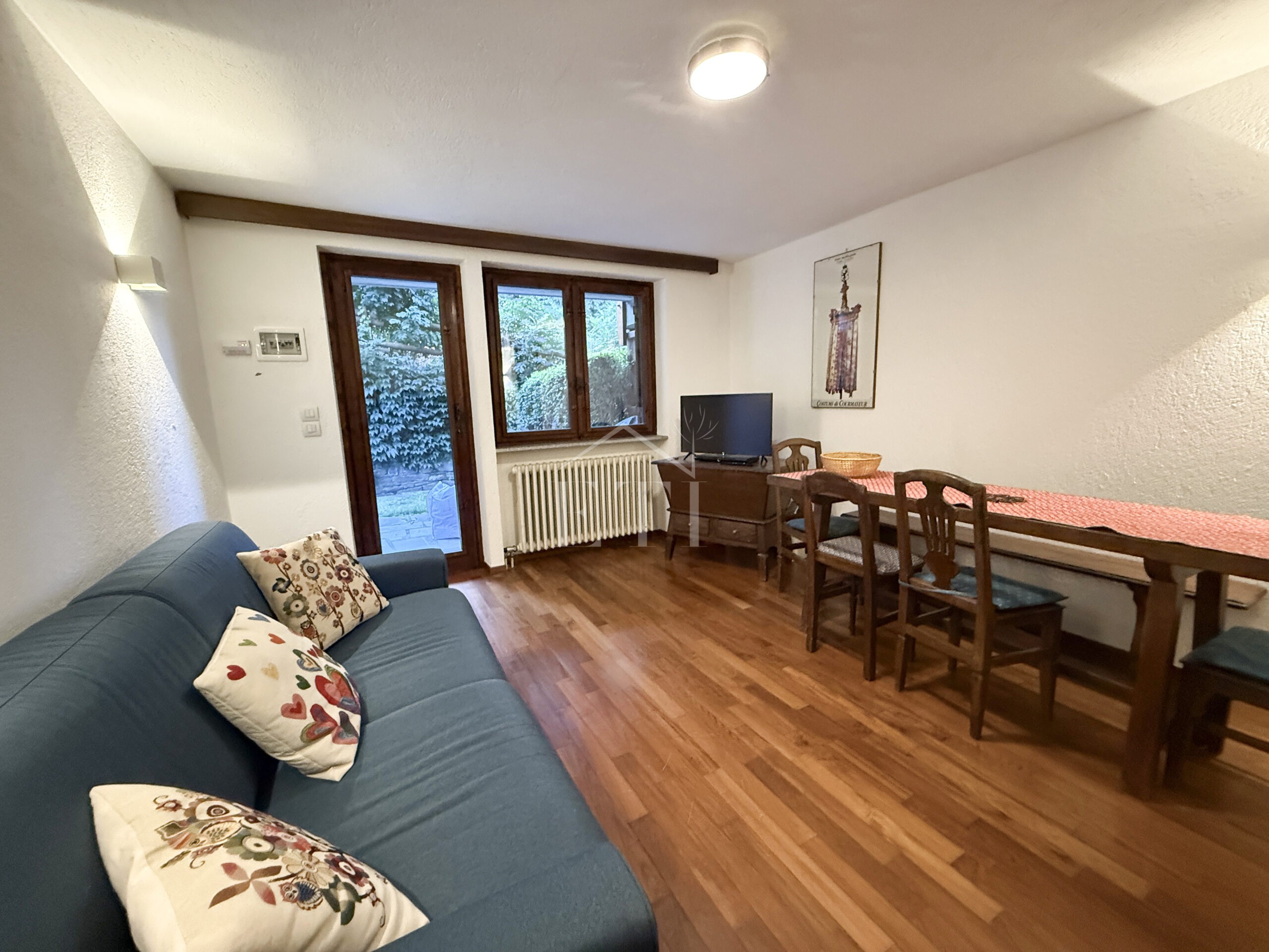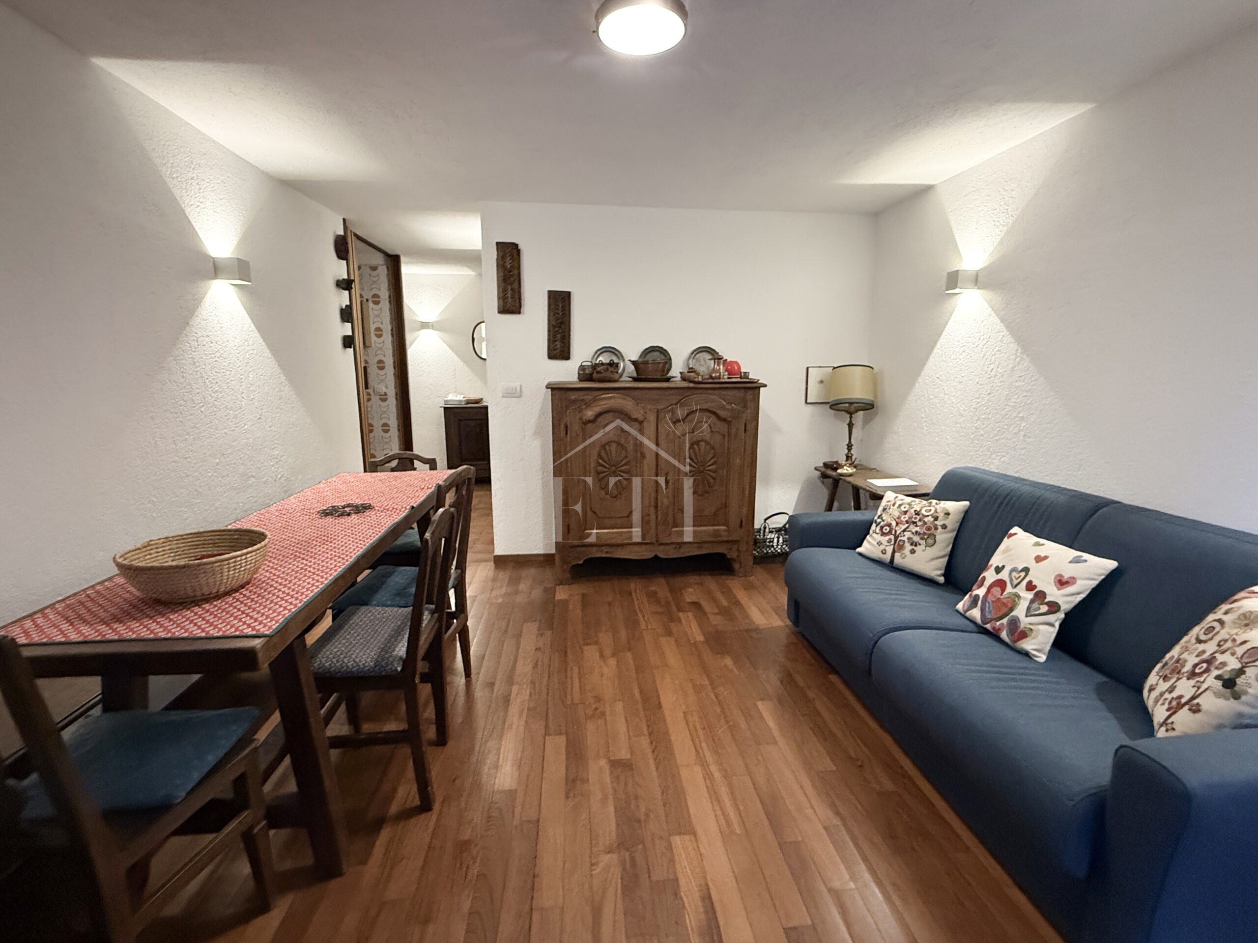 AFFITTO Trilocale al Verrand di Pré-Saint-Didier, piano terreno con giardino ad uso esclusivo composto da ingresso su zona giorno, cucinino separato, camera da letto matrimoniale, camera con letto a castello e bagno.